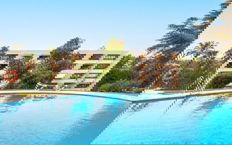 First-floor apartment facing south and east, surrounded by golf courses and amenities, Torres de Aloha, Nueva Andalucía. It consists of a living-dining room, a small kitchen, and an east-facing terrace, as well as a bedroom with an en-suite bathroom. Beautiful gated complex with reception, security guard, swimming pool, and within walking distance to restaurants, cafés, supermarket, tennis club, and golf courses. The monthly community fees include water and electricity supplies. A fantastic holiday home and ideal for investors seeking high rental potential. The development features spectacular gardens and a large swimming pool, surrounded by some of the best golf courses in the area. Very soon, the new promenade connecting Aloha with Puerto Banús will also be inaugurated.