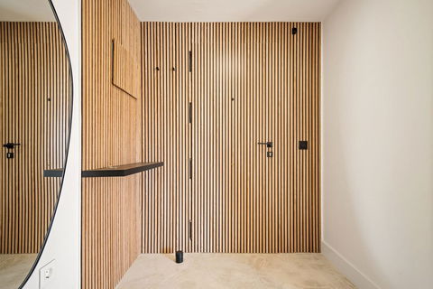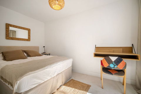 The apartment comprises three spacious bedrooms, including a master suite with ensuite bathroom, while the other two share a stylishly renovated second bathroom. Both bathrooms are fitted with radiators, and the home benefits from hot/cold air conditioning throughout. Additional highlights include ample fitted wardrobes, abundant natural light, and easy street parking just outside.
