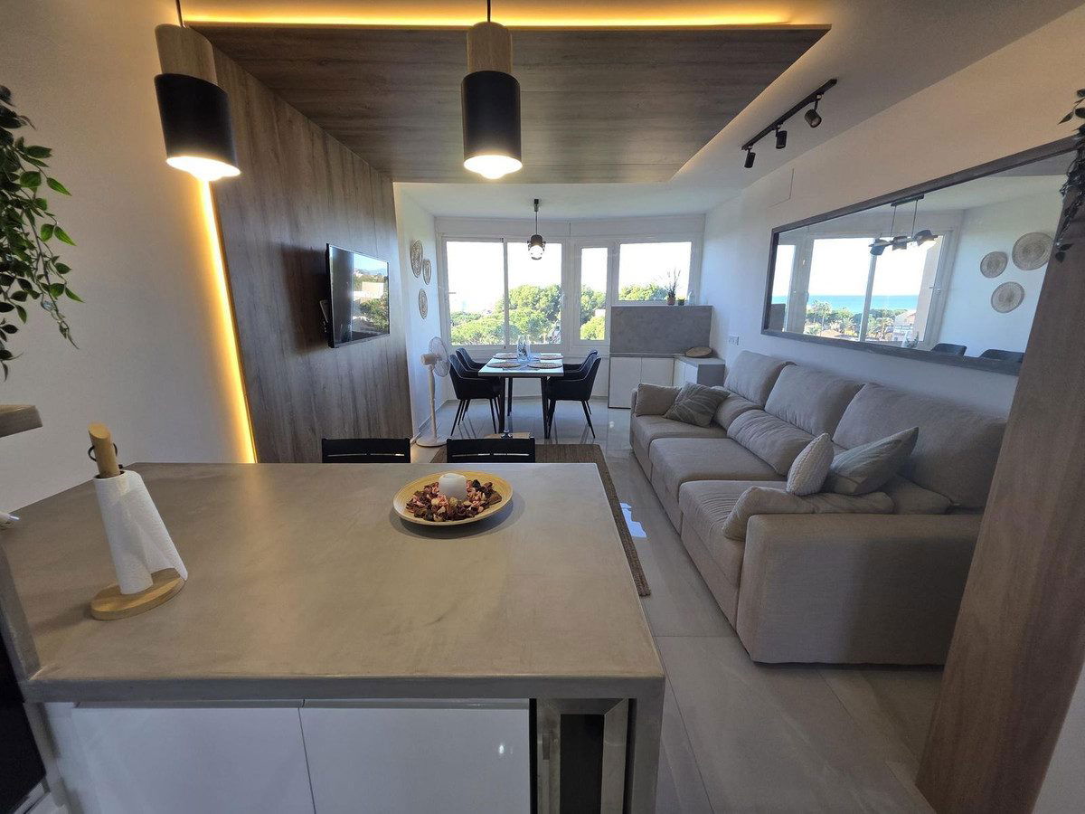 Just 100 meters from the beach, this stylish apartment has been completely renovated to the highest standards and already comes with an active tourist license, making it perfect for living, renting, or investing. With stunning panoramic views of the Mediterranean and surrounding mountains, it's located in the popular Mijas Costa area (Calypso) and offers a blend of modern design, smart-home features, and an unbeatable coastal location.