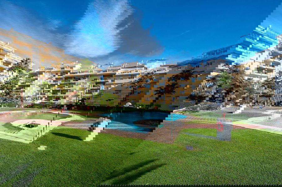 Spacious apartment situated just a short walk from the centre of La Cala village, beach and close to local shops, bars and restaurants at Jardin Botanico. The property offers good sized living accommodation and comprises of; 2 double bedrooms, 2 bathrooms, large lounge/diner leading to terrace with lovely sea views & benefits from glass curtains to enjoy this area all year round, fully fitted kitchen with separate utility room. The property is situated on the 1st floor and benefits from a lift and security gated entry system. Other benefits include solar heating for water, well kept communal gardens and pool. A fantastic located property! We have the keys for viewings!!!!