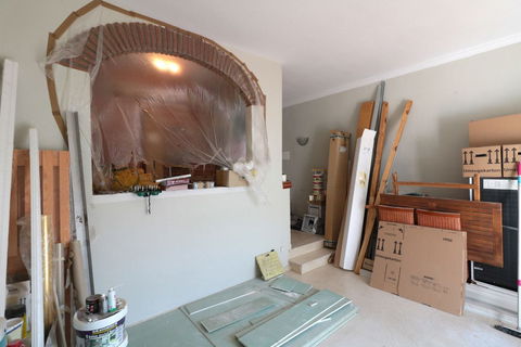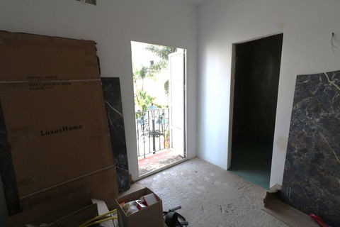 Only 1000 metres from the beach is this fantastic rough diamond of a holiday apartment or permanent home with a sunny living room with the access to the big balcony, an open american kittchen (unfinshed) and a good sized bedroom with a small balcony and the bathroom (unfinished) on suite for making ideas into reality. Lots of natural light is coming in and gives the apartment a cozy feeling even without furniture.