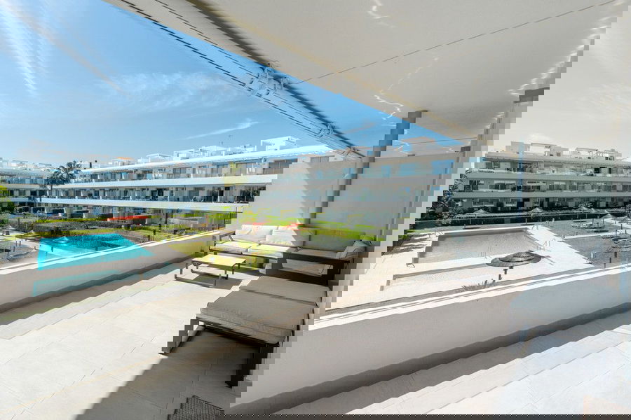 This bright and spacious 2-bedroom, 2-bathroom apartment is located in the sought-after area of Bel-Air, right in the heart of the New Golden Mile. The master bedroom features an en-suite bathroom with direct access to a generous 21m² terrace overlooking the beautifully maintained communal pool — ideal for enjoying the Mediterranean lifestyle.