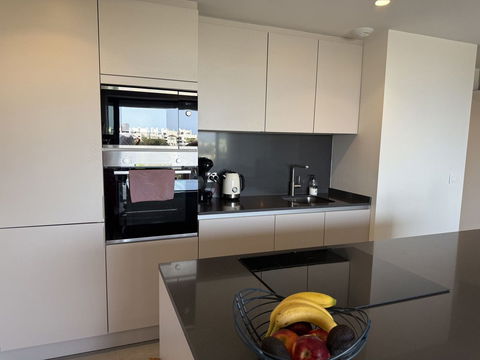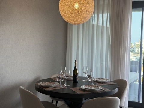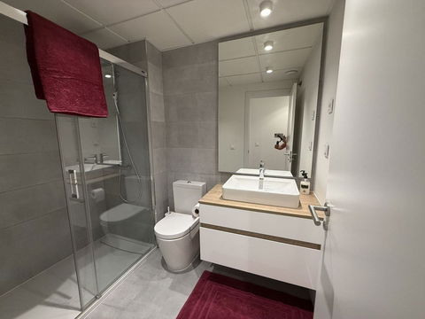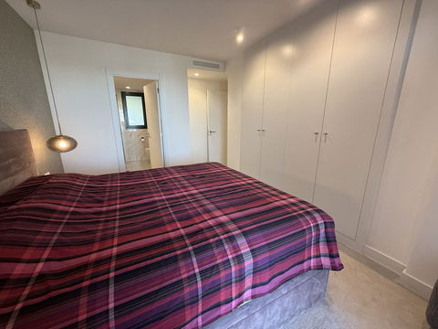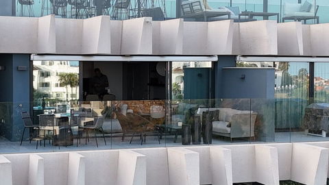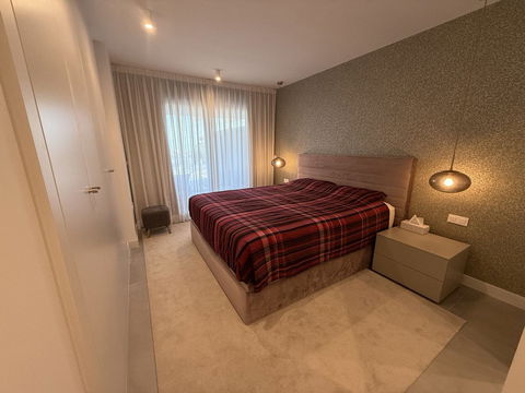 The master bedroom offers direct access to the terrace and enjoys spectacular views of the sea – a rare and privileged feature. The second bedroom is also generously sized, and both bathrooms are equipped with walk-in showers and finished in a modern, minimalist style. Throughout the apartment, high-quality materials, tasteful decoration, and abundant natural light create an atmosphere of calm and understated luxury.