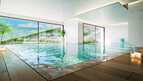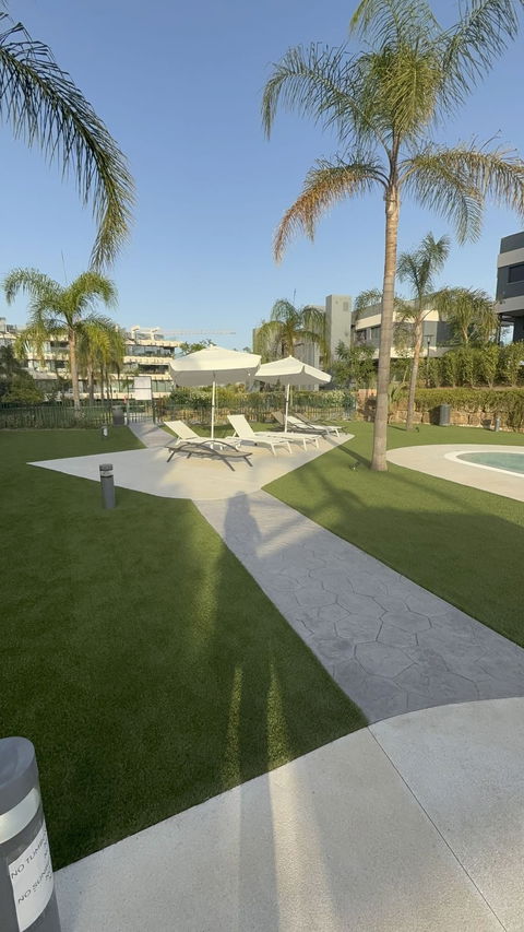 As a resident of Oasis 325, you'll enjoy access to a wide range of first-class facilities designed to promote wellness and relaxation. These include an outdoor infinity pool with separate children's section, both surrounded by soft-touch synthetic grass, and a heated indoor pool with a beautiful cascade fountain. The wellness area features a sauna and Turkish bath, and the fully equipped gym includes separate male and female changing rooms, each with showers and private lockers. A modern co-working lounge completes the offering, ideal for remote professionals or digital nomads.