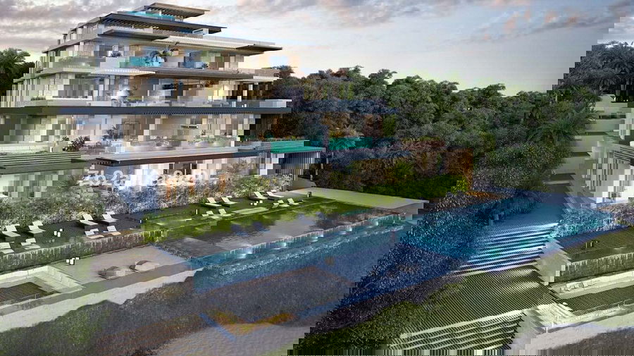 Luxurious property for sale in this exclusive seafront resort offers a contemporary design, ample interior spaces with views out into the Mediterranean through enormous windows, and extensive terraces with private pools. The use of high-quality materials and cutting-edge technology make this development a real gem. All the homes come with at least two large garage spaces and one storeroom.