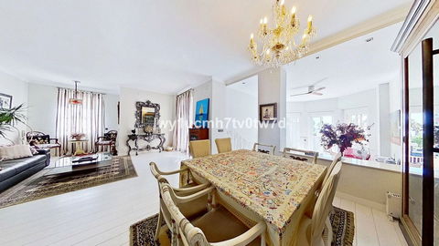The large dining room and living room with sea views and access to the large terrace offer the perfect space to relax and unwind.