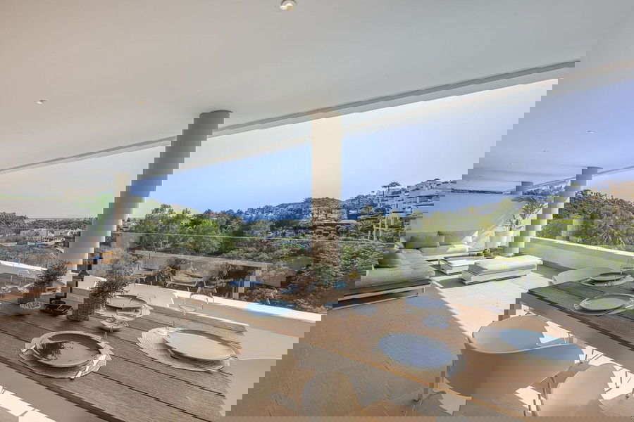 This exceptional duplex penthouse is in excellent condition and offers truly spectacular panoramic views of the sea, the surrounding nature, and the pool area.