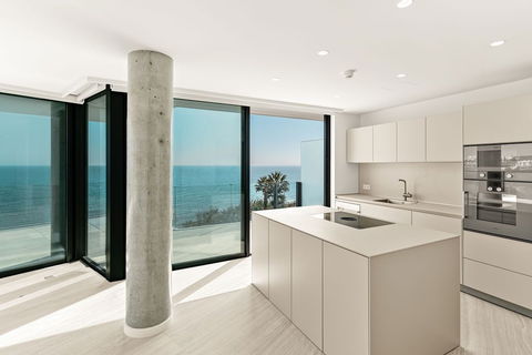 Every detail of this stunning residence is crafted to perfection, featuring a high-end Bulthaup kitchen with state-of-the-art Gaggenau appliances, luxurious Laufen bathrooms, and expansive living spaces designed for modern coastal living. Smart home technology allows you to control lighting, climate, and security with ease, while underfloor heating throughout ensures warmth and comfort all year round. The penthouse is fully thermally and acoustically insulated, providing an oasis of tranquility by the sea. Two spacious parking spaces and two large storage rooms add convenience and functionality to this exceptional property, while 24-hour security offers peace of mind in an exclusive and private setting.