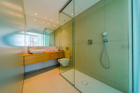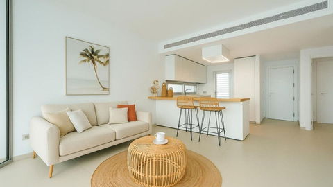 The two bedrooms, designed with great attention to detail, offer a tranquil retreat, ensuring restful nights and serene mornings. The master suite features a private bathtub, adding a touch of exclusivity to this luxurious home. Furthermore, the property includes multiple extras, such as underfloor heating, integrated LED lighting, an aerothermal system for heating and cooling, electric blinds, and filtered water.