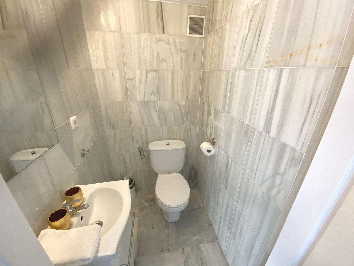A duplex penthouse it has 3 bedrooms, 1 of which is on the entrance floor together with an en-suite shower. There is also a guest toilet on the same floor.