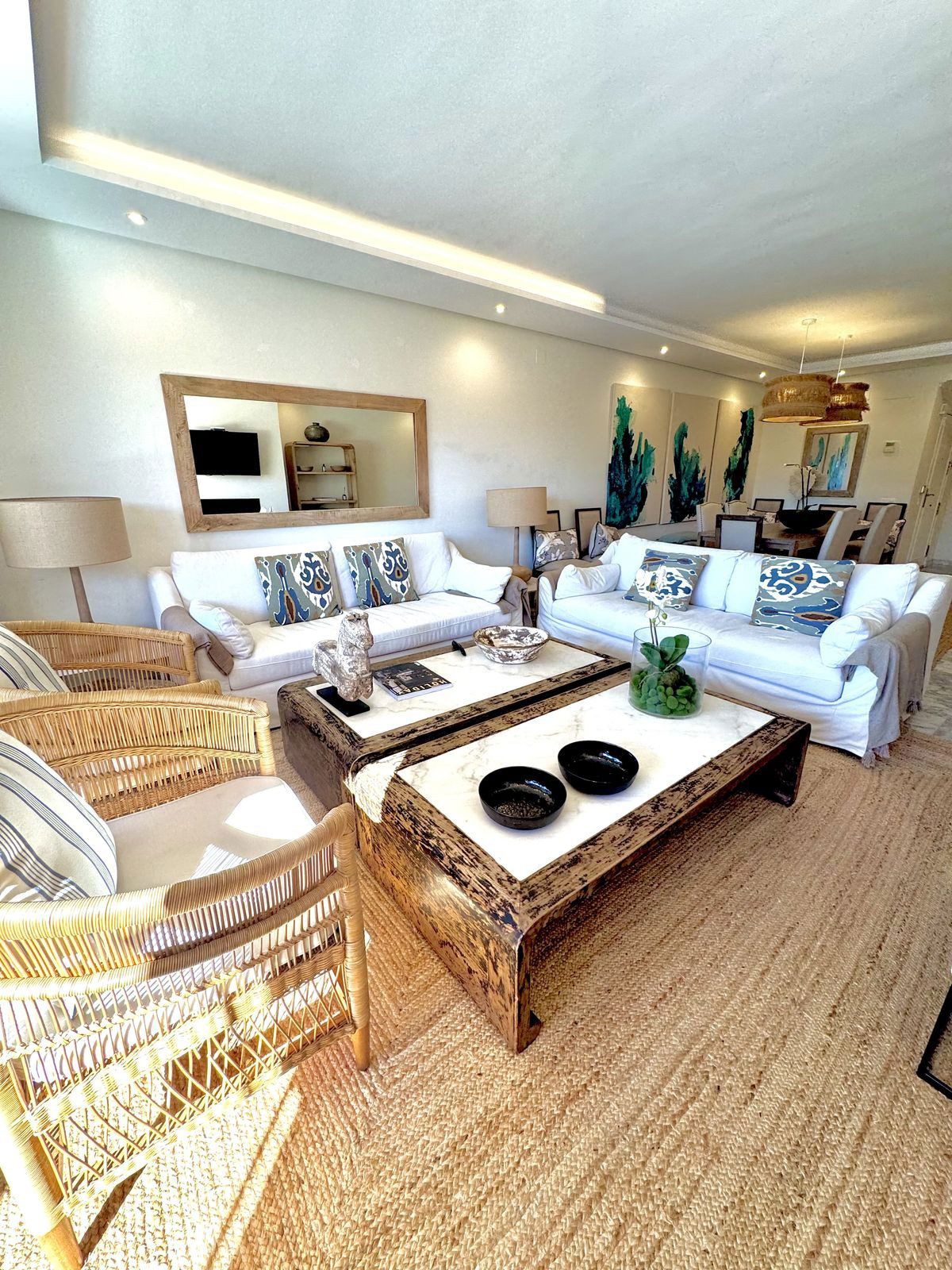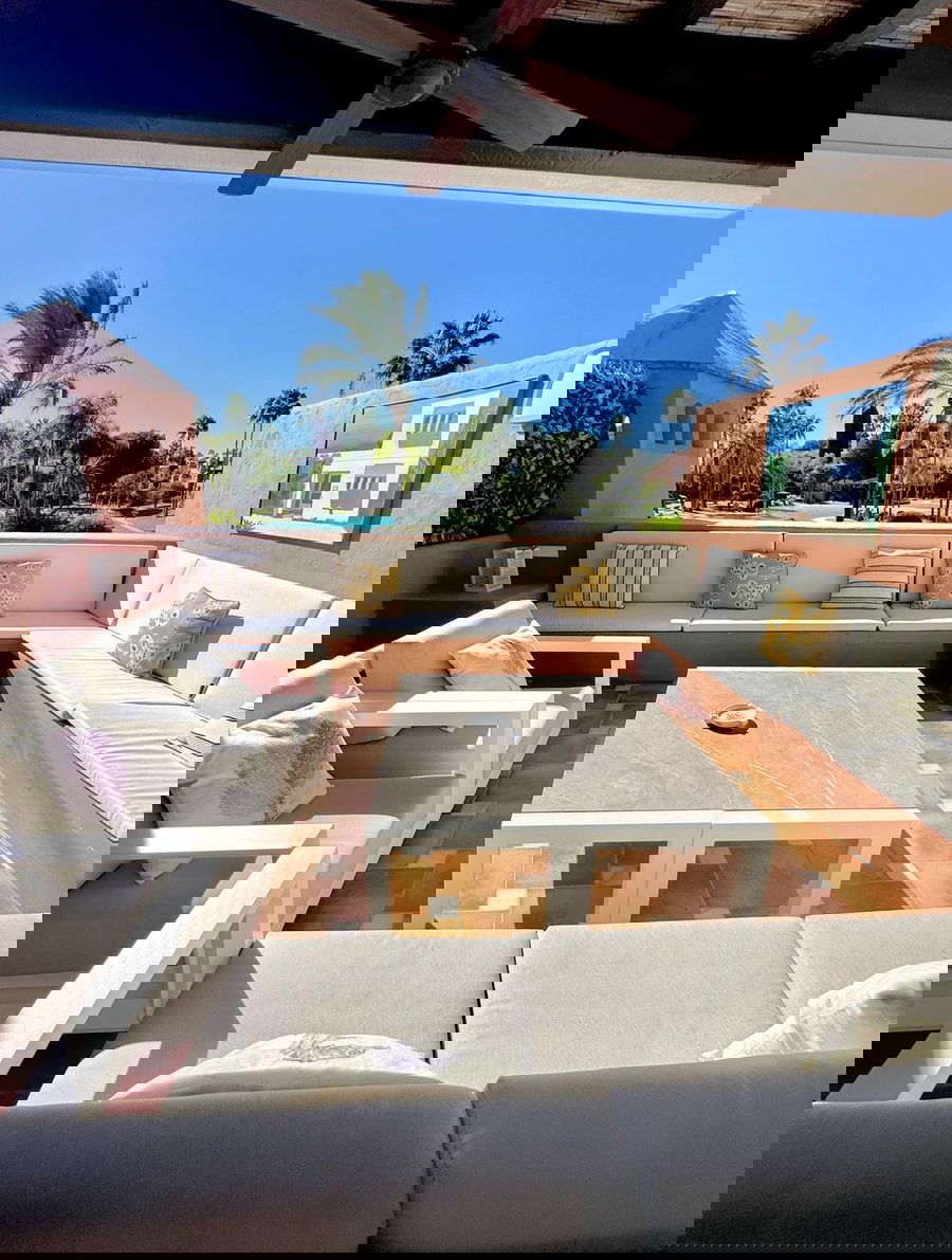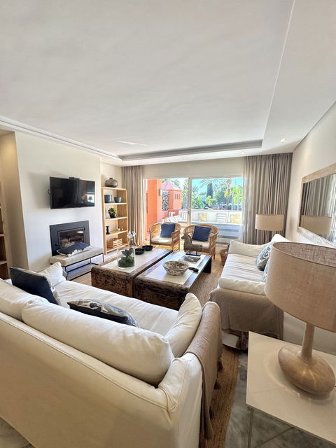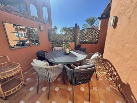 UNIQUE – BEAUTIFUL, RENOVATED AND IMPECCABLE. Spacious 4-bedroom duplex penthouse located in Alhambra del Golf, one of the most emblematic developments in Guadalmina Baja. It has spacious rooms and two terraces on both floors, totalling 70 metres. On the lower floor there is a large living/dining room with access to the semi-covered terrace, facing south and overlooking the communal gardens, beach, swimming pools and children's area of the development. It also has a fully equipped kitchen with a laundry area and two bedrooms, both with en-suite bathrooms, as well as a guest toilet. On the upper floor is the master bedroom, with high vaulted ceilings and numerous wardrobes, with its en-suite bathroom and access to a large covered terrace. On this same floor there is another bedroom with a full bathroom.