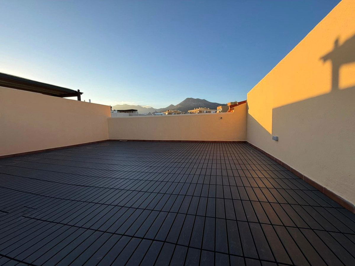 The property features two bedrooms, a modern bathroom, and an impressive 35 m² sunny terrace with open views of the sea and the mountains — the perfect spot to relax and enjoy the sunshine all day long.