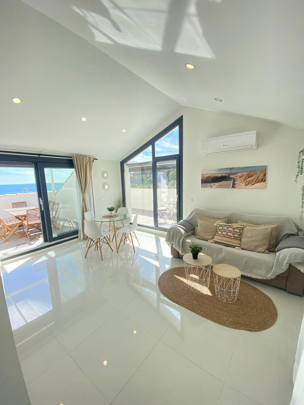 This modern bright property is perfect to enjoy your own special holidays as well as giving you a favorable investment opportunity. It has a high occupation for holiday rentals due to it´s great location, which is within walking distance to the beautiful sand beaches and all local amenities of Manilva. This one bedroom, fully furnished penthouse gives the option to have peaceful break for two, or due to it´s spacious living area with sofa bed, enables an extra two people to stay so you can enjoy with friends or children as well. The living area is connected to a fully equipped kitchen complete with fridge freezer, dishwasher, washing machine, oven and microwave. Sit and enjoy amazing sea views from all the terraces with the added advantage of having your own personal lift to access the penthouse. There are adults and children's pools to enjoy within a monitored and secure gated complex.