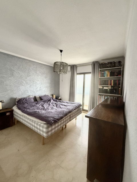 Penthouse apartment with the most stunning, panoramic sea views!!! Located within just a few minutes¨walk to the beach and just a few minutes¨drive to Fuengirola and La Cala de Mijas, this trully superb property is a rare find! The property comprises of a spacious lounge/dining room with pelllet burning fireplace, open plan modern kitchen, one double bedroom with bathroom plus the master bedroom with ensuite bathroom. Both bedrooms have patio door access to the terrace and built in wardrobes. Via patio doors from the lounge, is a stunning glass conservatory/sun lounge, used by the current owner as the dining room. The terrace of the property extends the full length of the apartment and to the side, being a corner property, and offers south facing full frontal and lateral uninterrupted sea views. The community is immaculately maintained, with gated access to the communal carparking area. There is a large swimming pool with sunbathing areas. Local amenities can be walked to also, including bars and restaurants, supermarket, bakery etc.