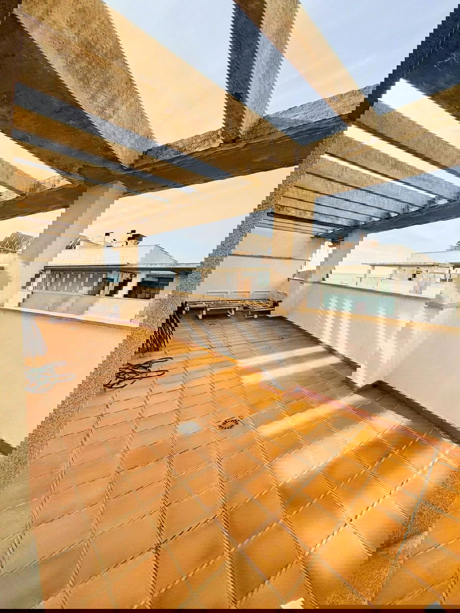 Fully equipped separate kitchen with laundry area, living-dining room with access to a terrace, two spacious bedrooms with built-in wardrobes, and two full bathrooms. Upstairs, we have access to a beautiful private solarium with sea views!