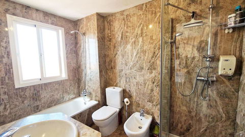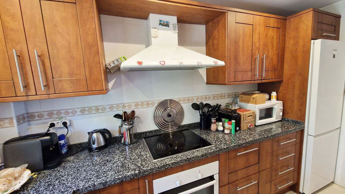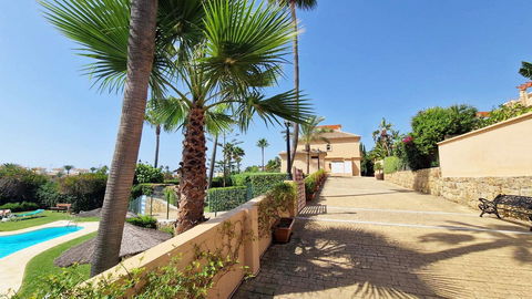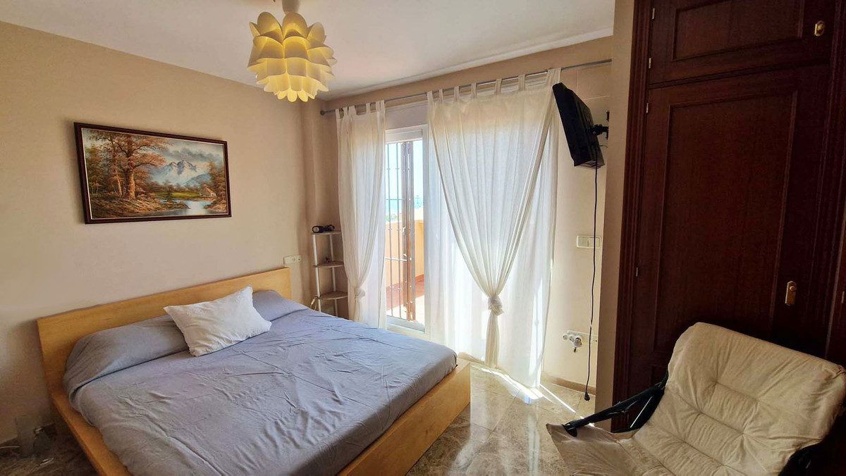 VERY NICE SEMI-DETACHED HOUSE WITH SEA VIEWS FOR SALE IN ESTEPONA!! This corner townhouse is located in the sought-after, secure, private development of Galera Park. Located 200 meters from the seafront, its location within the development protects it from the noise of the coastal road. The house is built on four floors. All floors have an elevator. The first level is the private underground garage, where two vehicles can easily be parked. The owner replaced the garage door with a much better-quality automatic one when he bought the property. The second floor consists of a beautiful living/dining room, a fully equipped semi-open kitchen, and a guest toilet. The living room leads out onto a charming terrace with a bit of sea view and a large, pleasant private green area overlooking the pool and the sea. On the first floor, there are three bedrooms and two bathrooms. The master bedroom has an en-suite bathroom and leads out onto a terrace that provides access to the fourth floor, the solarium, from where you can observe the surroundings and enjoy splendid sea views. You can see the sea from the living room terrace and also from the master bedroom terrace. The house has always been very well maintained by its owners, who even soundproofed the side wall of their only neighbor. Many shops are nearby, including two large supermarkets! This property is being sold partially furnished. All appliances remain. Ideal property for a family, either as a primary residence or for vacations.