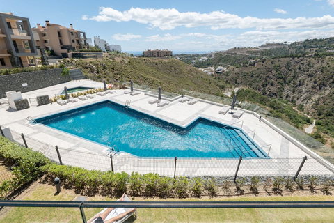 This super modern, spectacular, and unique 4-bedroom luxury apartment is now for sale in Olivos, la Quinta, Benahavís. The apartment is exceptionally large, as it was bought off-plan and combines two separate apartments (one with 3 bedrooms and one with 2 bedrooms) into one expansive living space. This unique layout provides generous room sizes and a vast terrace area. It features 4 bedrooms and 4 bathrooms, offering a perfect fusion of nature, tradition, and modern design. The apartment boasts breathtaking panoramic views of the entire region, including the sea, golf courses, mountains, and the La Concha peak, and is south to south-west facing to maximize natural light.