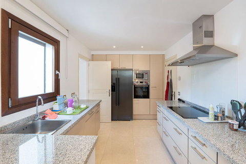 The rooftop features a solarium, a barbecue area, and a jacuzzi, perfect for enjoying outdoor living.