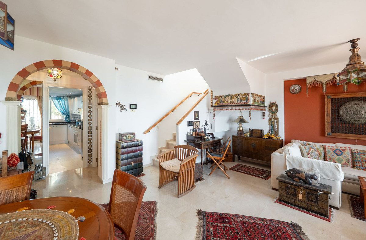 Located in the residential complex Terrazas de Bahía, this townhouse offers a rare combination of sea views, privacy, and convenient access to daily amenities. Casares Costa is a peaceful and green area with a relaxed atmosphere, situated just 5 minutes from the prestigious Finca Cortesin resort and less than 10 minutes from Estepona town center.