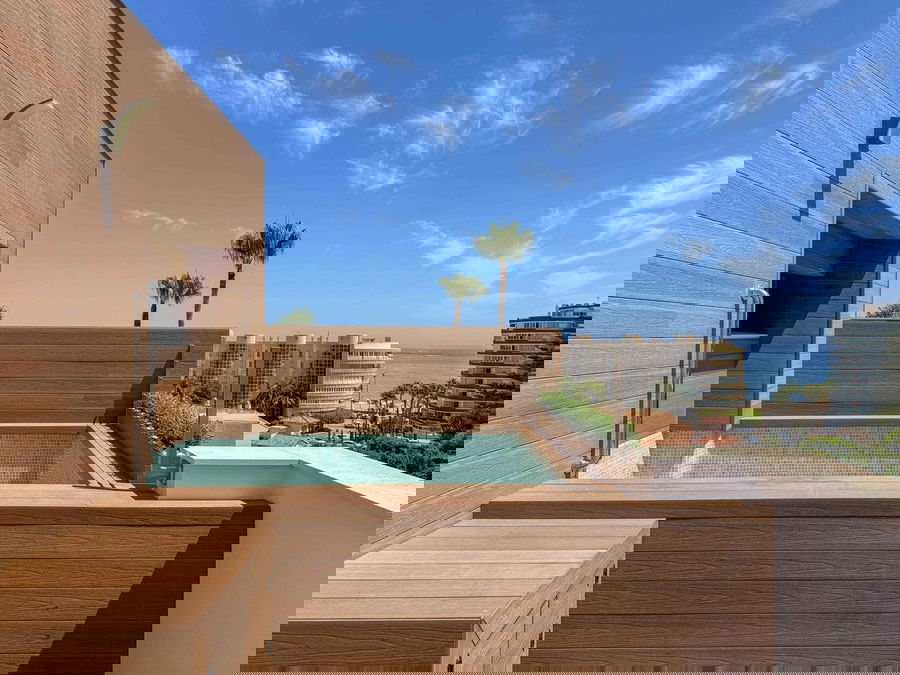 At the top of the roof there is a sun deck with a plunge pool, outdoor kitchen, toilet and a nice place to eat, enjoy and relax.