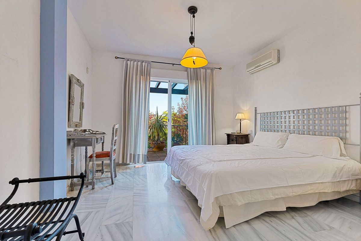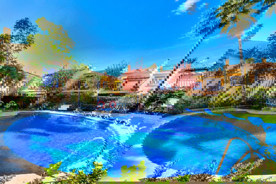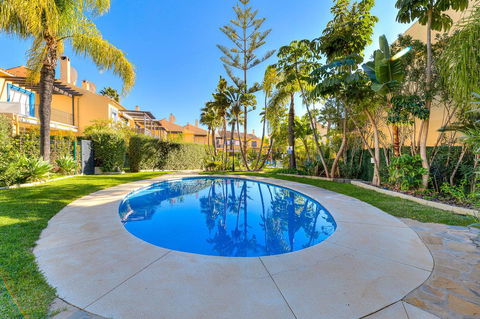 This magnificent townhouse in Nueva Andalucía, Marbella—a prime location between Puerto Banús and San Pedro de Alcántara. The property, with a south-facing orientation that ensures natural light throughout the day, offers direct access to the communal pool and private gardens, perfect for enjoying the Mediterranean lifestyle. Inside, it features a spacious living-dining room with a fireplace and access to the private garden, a fully equipped independent kitchen with a laundry room, a master bedroom with an en-suite bathroom and private terrace, two additional bedrooms sharing a full bathroom, and a guest toilet. The house is ideal for families or those seeking a secure investment due to its proximity to the sea, just a few steps away, and iconic locations like Puerto Banús, with its vibrant leisure and shopping options, and the amenities of San Pedro de Alcántara. Additionally, the area offers quick access to main roads as well as proximity to golf courses, restaurants, exclusive shops, supermarkets, and international schools. A unique opportunity to live or invest in one of the best locations in Marbella!