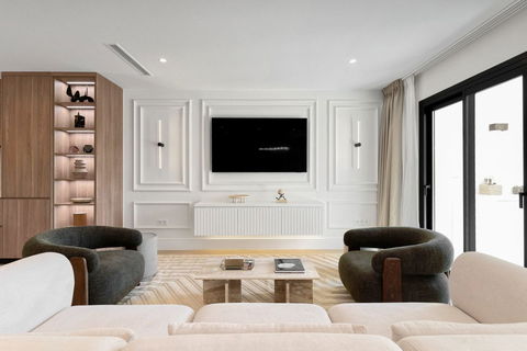 Complete with a fantastic basement layout with independent access from the front of the house. Complete with it's own kitchen, bathroom, walk-in wardrobe and custom made media wall with fire place. Additional independent access out to the pool from the basement is a unique feature that only Vasari 25 has compared to surrounding houses, a feature that fills the basement area with natural light. An additional laundry room is also located on this level out of sight from the living areas, together with an enclosed garage and parking space.