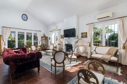 The villa, all laid out on a single level for ultimate convenience, spans a generous 300m² of built space, complemented by a 200m² terrace and set on a plot of 1,115m². The interiors feature classic Andalusian design elements, including terracotta floors and high ceilings that create a bright and spacious living environment. The heart of the home is a large, light-filled living room, perfect for relaxation or entertaining. The fully fitted kitchen is of a good size, catering to all culinary needs, while the dining room provides a warm and inviting space for family meals. Accommodation includes three bedrooms in the main house, two of which have en-suite bathrooms, plus a guest room with its own private entrance, which can also be accessed from within the house. Additionally, there is a guest toilet, ensuring ample facilities for residents and visitors alike.