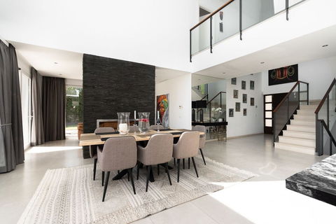 The villa is tastefully decorated and filled with natural light throughout. The double-height ceilings in the entrance hall and dining area create an enhanced sense of space and elegance.