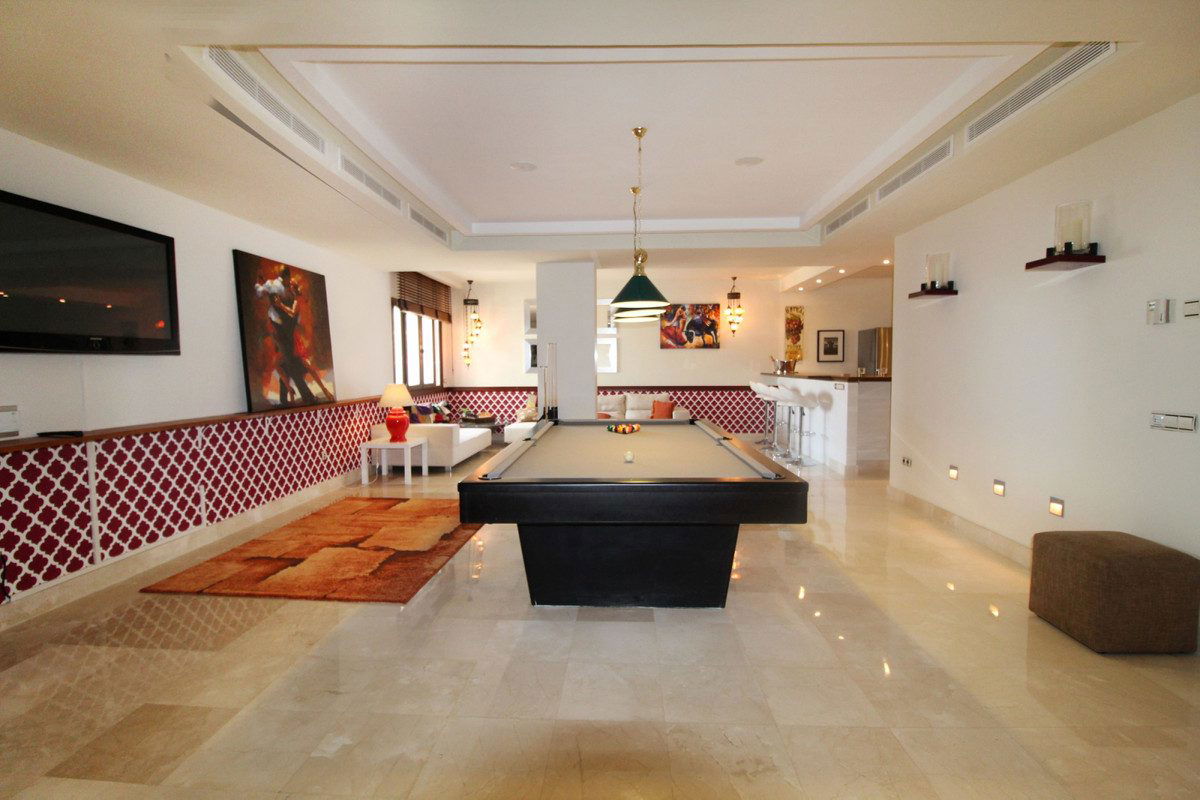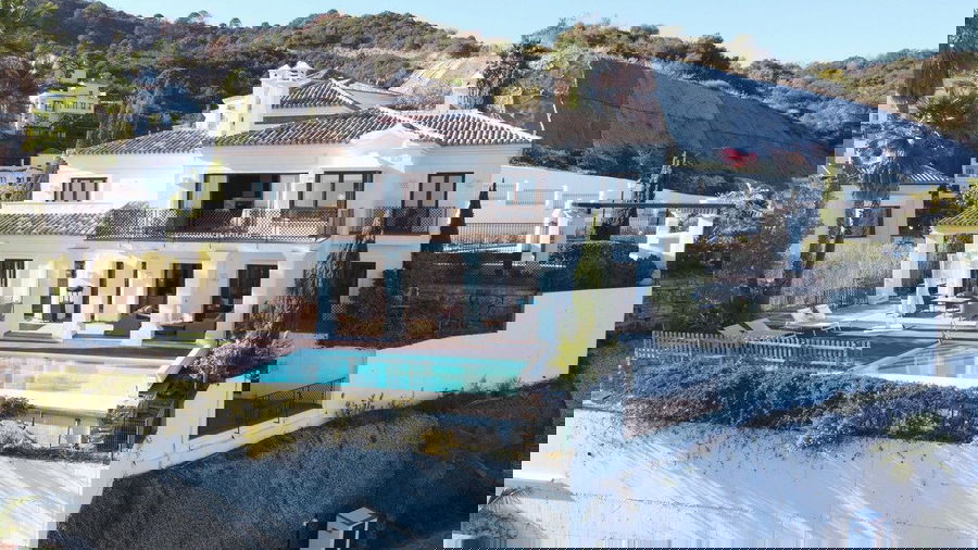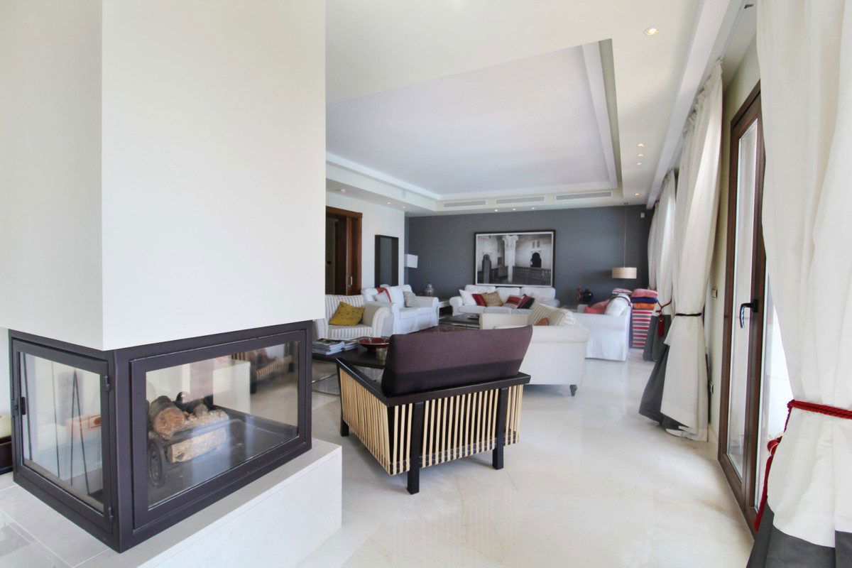 Situated on a gated community just a short walk from the beautiful village of Benahavis and all its famous restaurants, and just seven kilometres inland from the glamourous coastal hotspots of Puerto Banus and Marbella lies this contemporary south facing villa with absolutely stunning views out over the Mediterranean. This is a very spacious property with five large en-suite bedrooms distributed over three floors. The living & dining areas are open plan with lots of windows giving it a bright and airy feel throughout the day. Off the living room is a covered terrace which looks out to the heated pool and gardens, both maintained by the community and enjoy those amazing views out over the Mediterranean and La Concha mountain. The dining area is separated by the central fireplace and leads through to the large modern kitchen and breakfast area. The enormous lower level is currently used as a games room with bar, cinema and gym and enjoys natural light and views over the mountains. The standard of finish is high with underfloor heating in the bathrooms and good quality doors, windows and marble floors. The villa has private parking for two cars and plenty of storage rooms. The development is gated and has 24h security guards. This villa would make a fantastic low maintenance permanent residence or a perfect lock up and leave holiday home, which also has fantastic rental potential.
