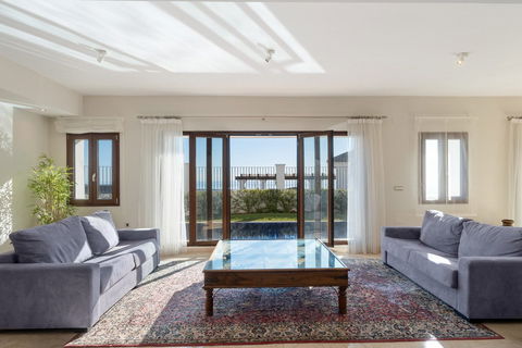Built in 2012, the property retains its original contemporary design, featuring bright interiors, open living areas, and plenty of potential for modern upgrades or personal touches. The villa is also equipped with an elevator, providing convenient access to all levels. Facing south, it enjoys sunlight throughout the day and spectacular evening sunsets.