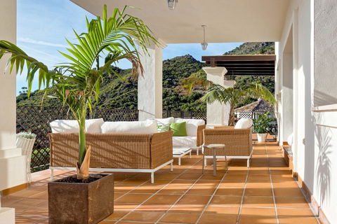 Located in the prestigious gated and 24-hour secured urbanisation of Benahavis Hills Country Club, this impressive 5-bedroom, 7-bathroom villa offers exceptional privacy, generous space, and panoramic views of the Mediterranean Sea and surrounding mountains. With only 40 villas in total, the community provides a serene and exclusive atmosphere surrounded by nature.