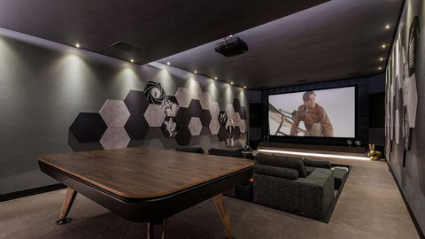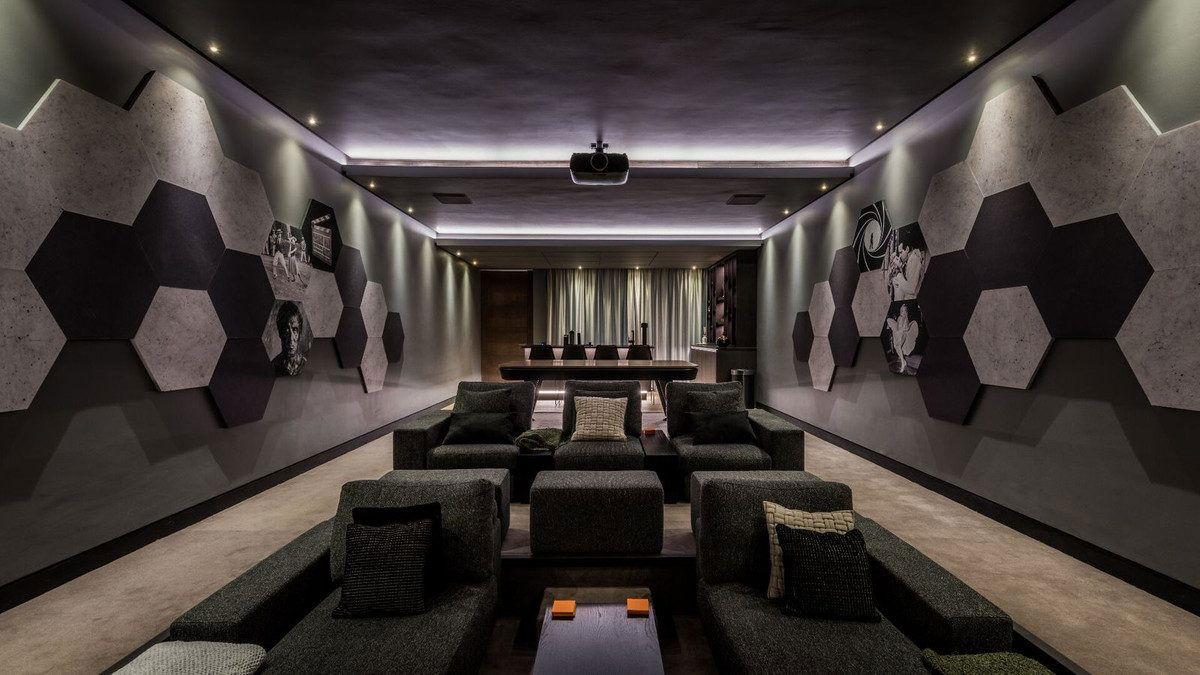 From the main vestibule, we descend one level where there are 4 large bedrooms with en suite bathrooms and all with direct access to the luscious gardens and swimming pool beyond. On this level, there is also a full gymnasium and Sauna, bodega and in house cinema, with hospitality kitchen by Siematic, and games area. The closed garage comfortably accommodates 4 cars and there is also a separate laundry room. The adjacent landscaped gardens are carefully manicured and surround the infinity pool with outdoor kitchen and BBQ by Siematic with seated area. For cooler evenings guests can also enjoy a second fire pit area in the garden.