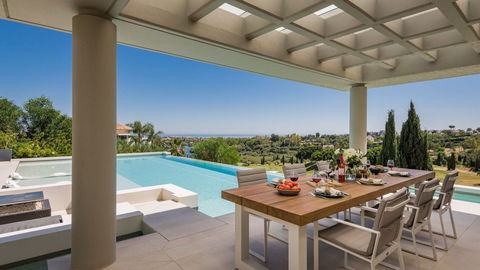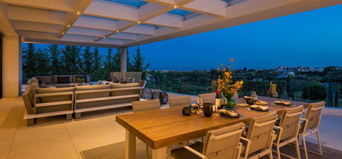The villa is superbly located in Los Flamingos, a highly sought residential area offering a privileged lifestyle between Estepona and Marbella. It offers convenient access to the beach, has three championship golf courses and is home to the 5* Villa Padierna Anantara Resort.