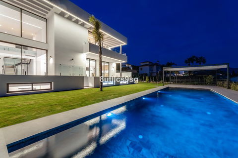 This contemporary villa is situated in the sought-after area of Paraiso Alto, Benahavis, Malaga. The property offers six bedrooms and eight bathrooms, including six en-suite, and stands out for its generous proportions with a built area of 1,038m² and a plot of 1,890m². Key features include a private pool, a private garden, and a private garage, providing both comfort and exclusivity.