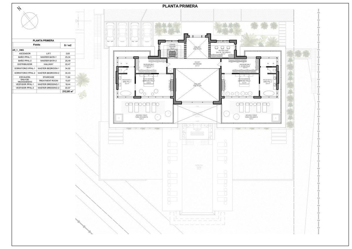 The villa features six spacious bedrooms, each with its own en-suite bathroom, as well as a guest toilet, ensuring comfortable accommodation for family and guests. The interiors are meticulously appointed with high-end finishes, including porcelain flooring, fitted wardrobes, and glass doors, while the fully equipped kitchen and separate utility kitchen provide versatile culinary spaces. The living and dining areas open onto both covered and uncovered terraces, seamlessly integrating indoor and outdoor spaces. The property is fully accessible via elevator and is equipped with home automation technology, underfloor heating throughout, individual air conditioning units, and aerothermal systems for year-round comfort.