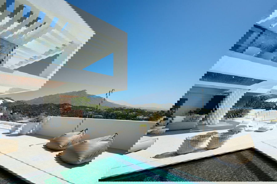 Nestled in the serene enclave of La Quinta, this contemporary villa, built in 2021, is designed to capture the essence of luxury living. South-facing, it offers stunning, sweeping views from the impressive La Concha Mountain to the Mediterranean Sea and even Gibraltar, making every sunrise and sunset a picture of peace and beauty.