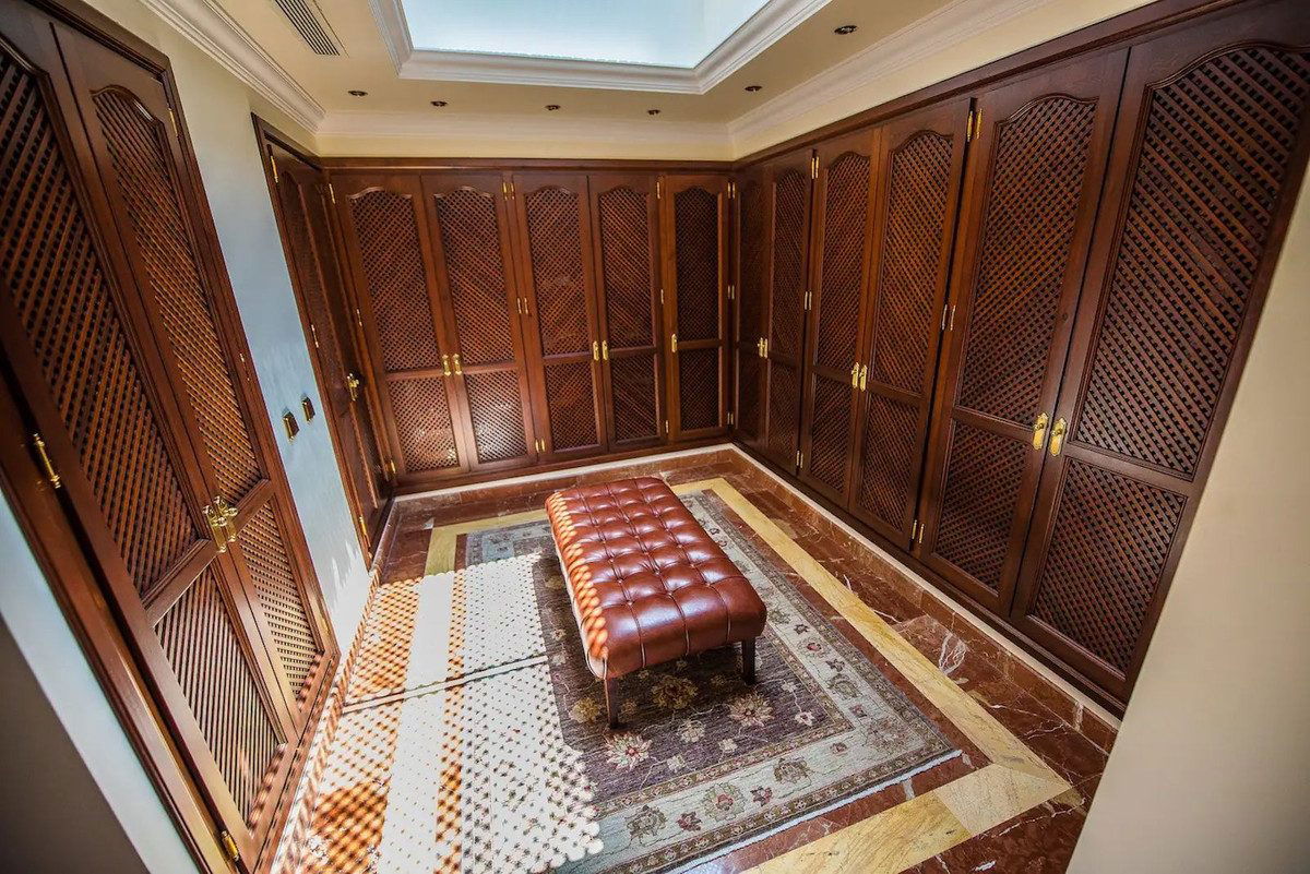 The main house, a magnificent Spanish villa, rises behind the pompous, hand-laid natural stone entrance area with fountain. It offers a master bedroom with a luxurious marble bathroom and
