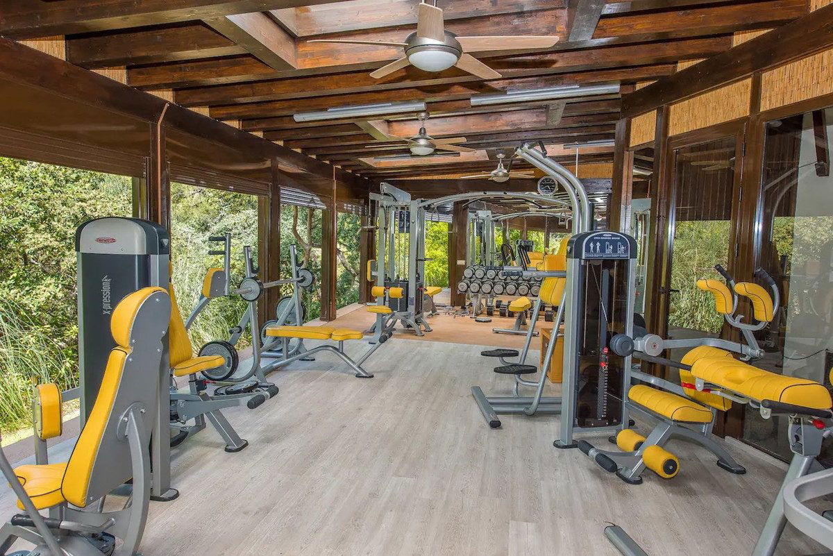 The beautiful leafy gardens lead to a glass studio/yoga/meditation house built into the hillside and a children's playground. Of course, the house has air conditioning and video surveillance.