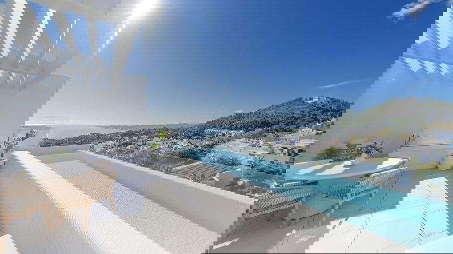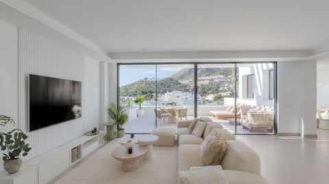 The main space combines a designer kitchen, dining room and living room in an open-plan concept that flows onto a west facing terrace. Here you can enjoy outdoor living on a spectacular, large terrace with a private swimming pool.