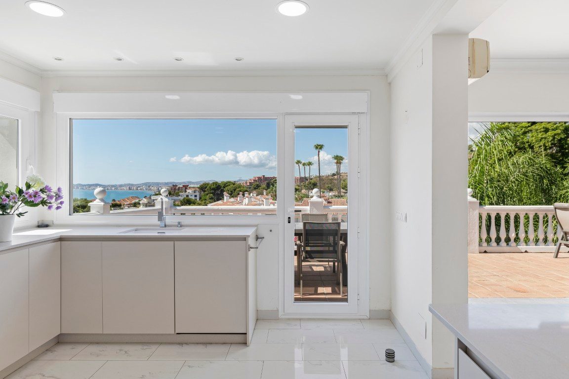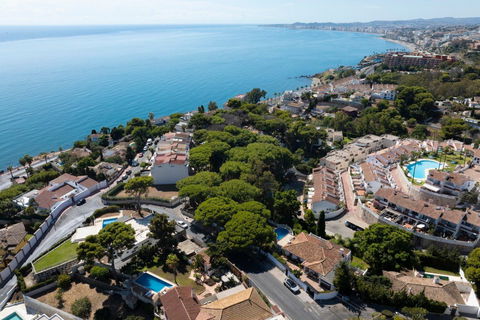 Just a five-minute walk from the sea and offering breathtaking, unobstructed views of the Mediterranean, this villa in Torremuelle, Benalmádena, is much more than a property, it's an invitation to live surrounded by light, tranquility, and nature.Set on a generous 1,328 m2 plot, with a total built area of 413 m2 distributed over three floors, the villa provides a solid foundation with outstanding potential for a full renovation that could truly enhance its value and character. While the home is in good condition and ready to move into, it presents a fantastic opportunity for those looking to create a bespoke residence in one of the most sought-after coastal settings.The villa features six bedrooms and four bathrooms, along with a spacious and bright living room with a cozy fireplace and large windows that perfectly frame the sea views. The kitchen has been recently renovated, is fully equipped, and opens directly onto a terrace where the Mediterranean takes center stage. Additional spaces include a gym area, wine cellar, and several sun-drenched terraces that can be adapted to suit any lifestyle or family need.The exterior is a true Mediterranean retreat, with a lush, mature garden and water features surrounding a large private pool, complete with shower area, outdoor bathroom, and a fully equipped summer kitchen with BBQ, ideal for entertaining and enjoying the Costa del Sol climate. The property also includes a covered garage and additional on-site parking.The location is simply unbeatable. Nestled in a peaceful residential area, it's exceptionally well connected, just minutes from local bus stops and the Torremuelle train station, which offers easy access to Málaga and Fuengirola. Only a short 3-minute drive to restaurants, cafés, beach clubs, and supermarkets like Lidl and Mercadona. Sports lovers will appreciate the proximity to the Torremuelle Racket Center, offering tennis and paddle courts just 6 minutes away, as well as the prestigious Torrequebrada Golf Club only 10 minutes from the villa. Málaga International Airport is conveniently located just 20 minutes away by car.A home with soul, spectacular views, and incredible potential to personalize, without giving up the comfort of being move-in ready. Whether you're looking for a primary residence, a holiday home, or a high-potential investment in one of the most desirable areas of the Costa del Sol, this villa is a must-see. Contact for private tour.The abbreviated information document is available to you. Expenses: Taxes (ITP or VAT+AJD) + Notarial and registration expenses.ALA..