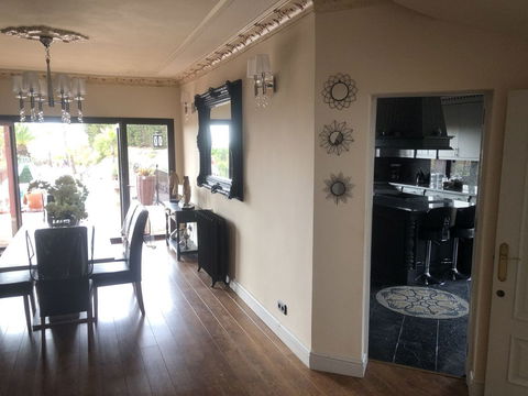 Entrance: Step into a welcoming hall leading to a spacious living room with a dining area.