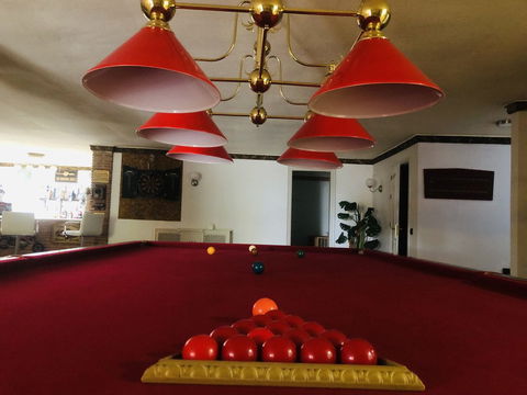 A fully finished basement with windows includes a TV area, game area, bar, pool tables, and an additional bedroom and bathroom.