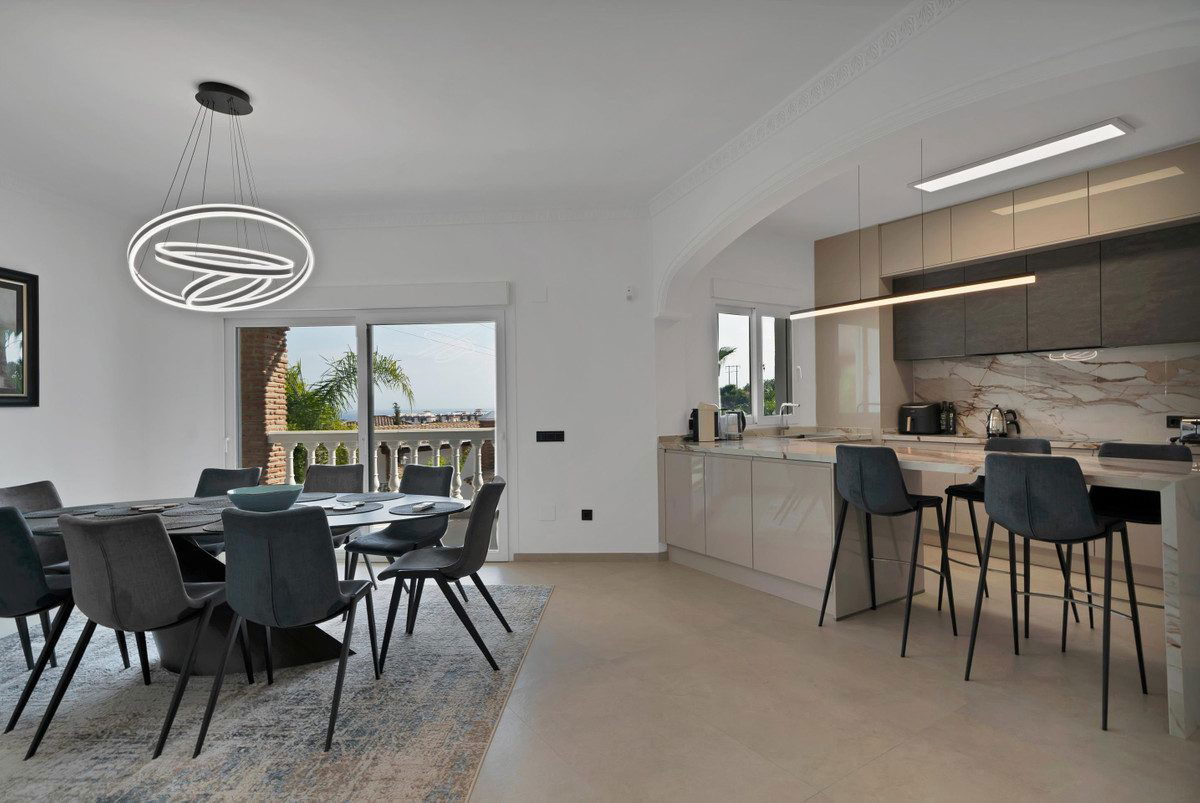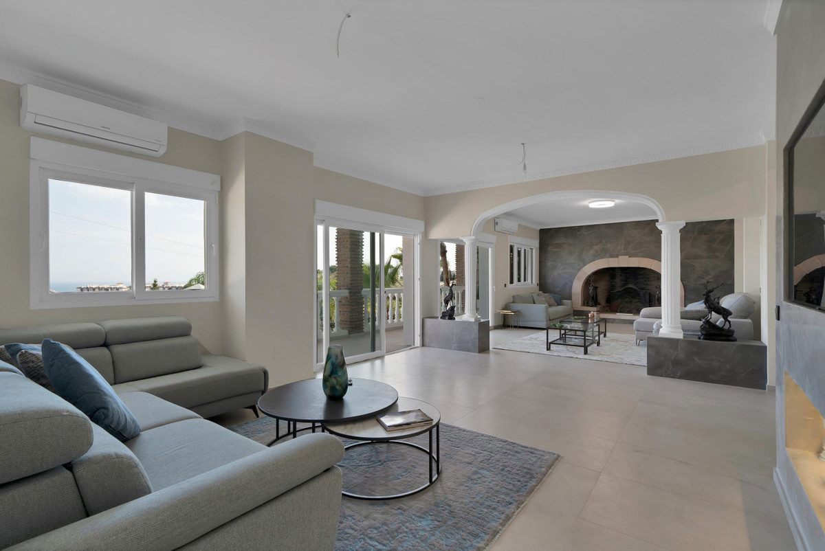 A Royal Retreat in La Capellanía, BenalmádenaWhere panoramic views, timeless design, and tranquil luxury uniteMore than just a home, this villa is a sanctuary of space, elegance, and comfort. Nestled in La Capellanía, one of the Costa del Sol's most prestigious residential areas, it offers a perfect blend of seclusion and convenience. Minutes from Benalmádena Pueblo, Fuengirola, and the coastline, the area also features top international schools, golf courses, and beaches. Málaga Airport is just 15 minutes away.As you pass through the gates, you're greeted by a serene, landscaped pond and lush Mediterranean gardens—setting the tone for the refined lifestyle that awaits. A stone pathway leads to the main entrance, flanked by mature palm trees. To the right, ample outdoor parking for four cars and a covered garage for three more.At the heart of the estate lies a spacious pool with sweeping sea and garden views. To the south, a stylish barbecue and al fresco dining area provide the perfect setting for memorable evenings.The Main Residence – For Living, Entertaining, and Family LifeInside, the main villa features a bright and spacious living area opening onto a large south-facing terrace—ideal for morning coffee or hosting guests. To the right, a cozy lounge with a fireplace offers a warm ambiance, while a separate TV room on the left makes the space both elegant and functional. This level also includes a guest WC and storage room.The chef's kitchen is open-plan, modern, and fully equipped with high-end appliances and an island. A connected utility room houses laundry appliances, refrigerators, and a pantry. The adjacent dining room with large windows also opens onto the terrace.This floor includes two guest bedrooms with built-in wardrobes and a shared, stylish full bathroom.Upstairs, the private quarters offer access to two panoramic terraces overlooking the pool, garden, and coastline. The master suite and another bedroom include en-suite bathrooms, while a third bright bedroom and another full bathroom complete the level—perfect for families and guests seeking space and privacy.Independent Residences – Privacy, Versatility, and Income PotentialWhat makes this property truly unique is the inclusion of two self-contained residences on the garden level, each with a private entrance and direct access to the pool and gardens:The first residence has been fully renovated and furnished, featuring an open kitchen and two en-suite bedrooms—ideal for visitors, extended family, or vacation rentals.The second residence also offers an open kitchen and two en-suite bedrooms and can serve as staff quarters or be converted into a private gym, home cinema, or wellness suite—offering limitless potential.An Exceptional OpportunityThis fantastic Villa is more than a luxury property—it's a lifestyle investment. Whether as a family residence, a multigenerational estate, or a high-end rental opportunity, it offers unmatched flexibility and timeless elegance.Contact us today for more information or to schedule a private viewing of this exceptional estate.The abbreviated information document is available to you. Expenses: Taxes (ITP or VAT+AJD) + Notarial and registration expenses.NG1.