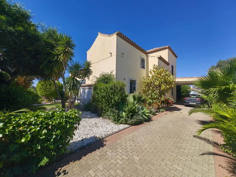 The villa sits on a generous plot of almost 1,000 m², surrounded by landscaped gardens that ensure privacy, tranquility, and a true sense of escape. A large private swimming pool takes center stage, while an automated gate opens to the driveway with both open and covered parking.