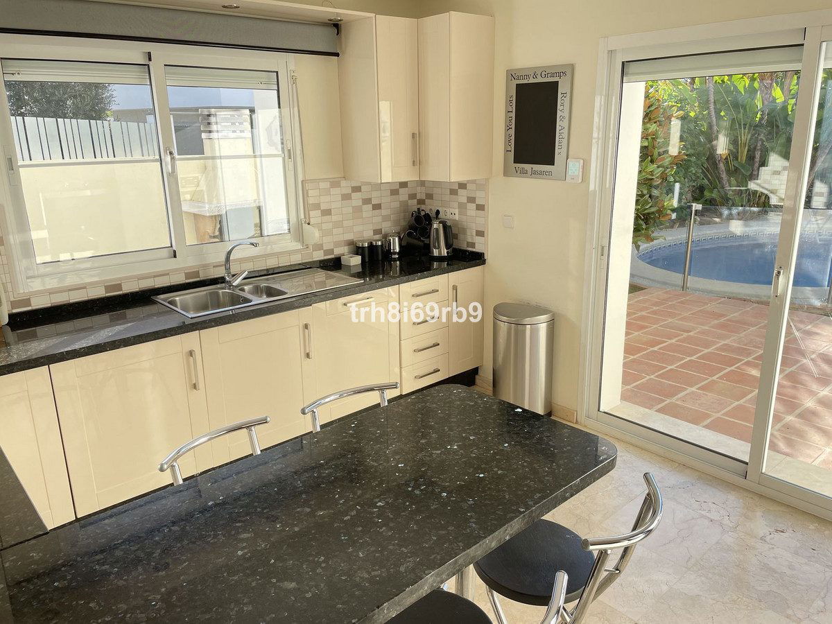 Discover this stunning 3-bedroom, 3-bathroom detached villa that offers a perfect blend of luxury and comfort. Located on just a short stroll from the beach, this property is an ideal retreat for those seeking a seaside lifestyle. The spacious lounge welcomes you with abundant natural light, while the modern fully fitted kitchen is perfect for culinary enthusiasts. The ground floor features an en-suite bedroom, making it suitable for individuals with mobility issues. On the 1st floor, the master bedroom boasts a large en-suite bathroom, complete with both a bath and a walk-in shower, and opens onto a south-facing terrace where you can soak up the sun. A second guest bedroom on the first floor also includes an en-suite bathroom with a walk-in shower. Step outside to enjoy your private pool, which has pre-installation for heating, ensuring year-round enjoyment. The garden and pool area bask in sunlight for most of the day, creating an inviting outdoor space. The local village of Cancelada is just a 10 minute walk over the foot bridge, with a variety of bars, restaurants, banks and supermarkets. With off-road parking available and located on the beach side of the New Golden Mile, this villa is perfectly positioned between Estepona and San Pedro, making it convenient for all your needs.