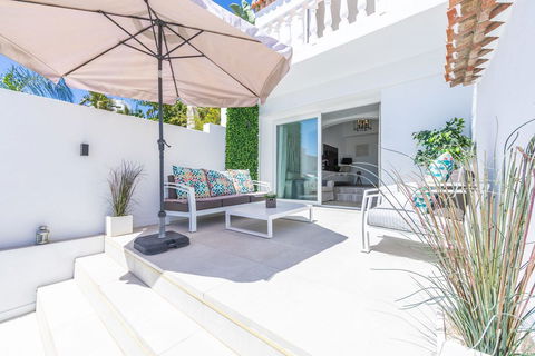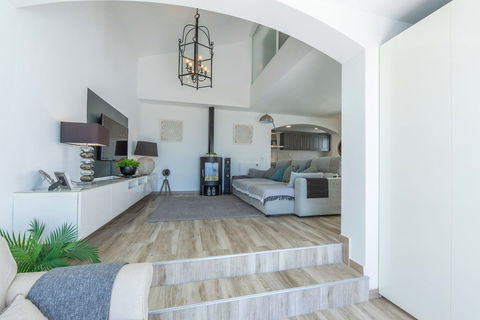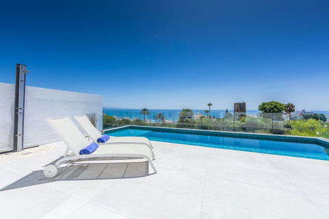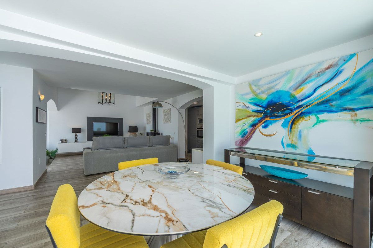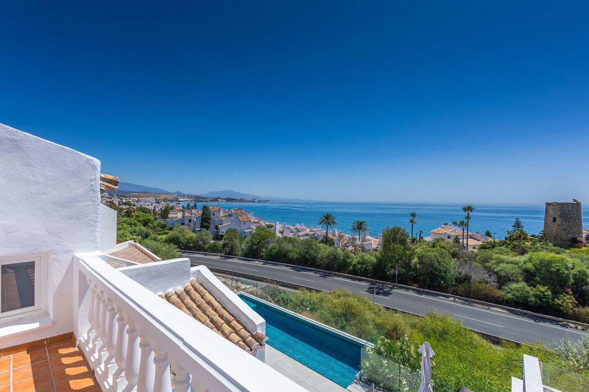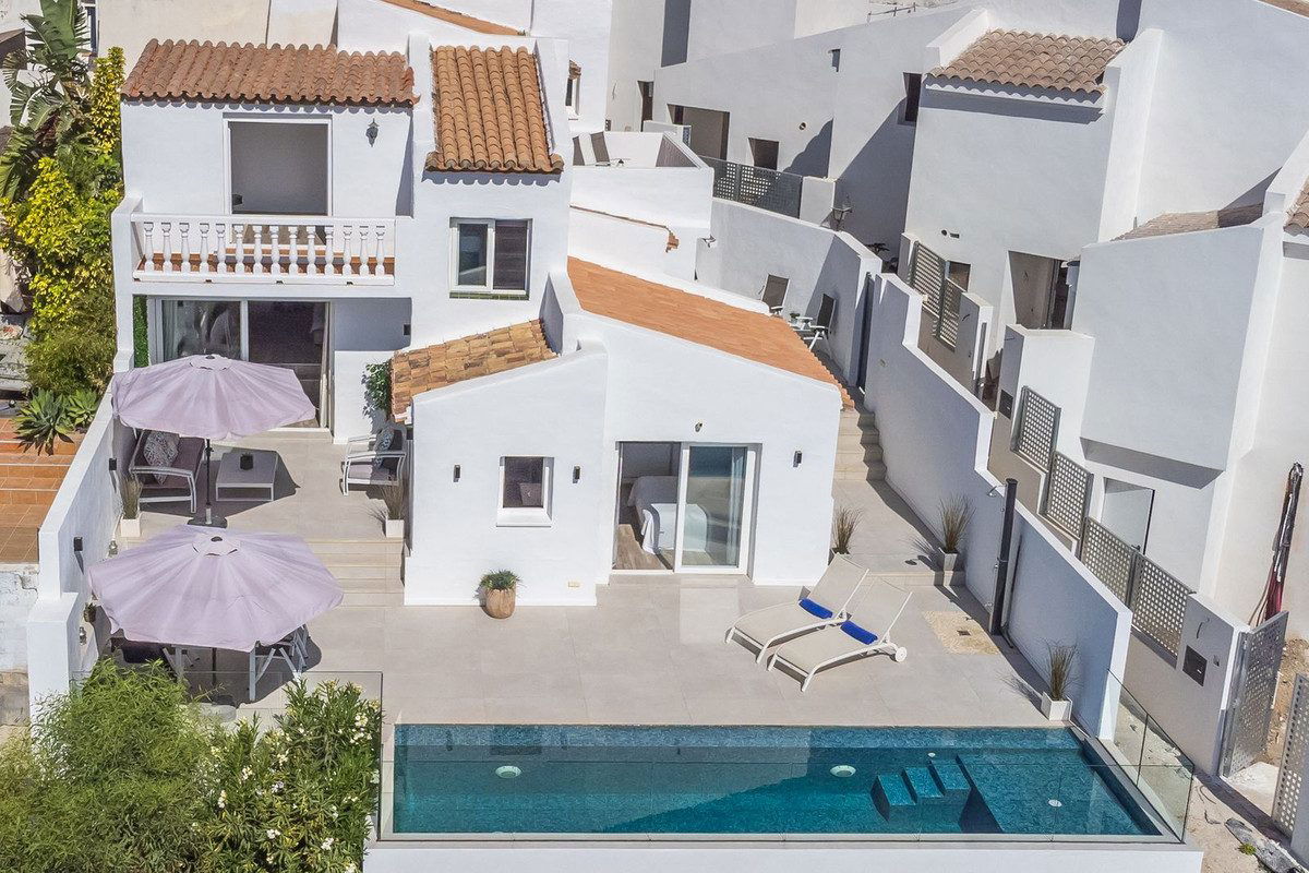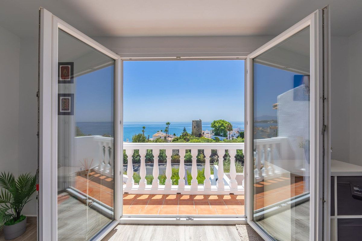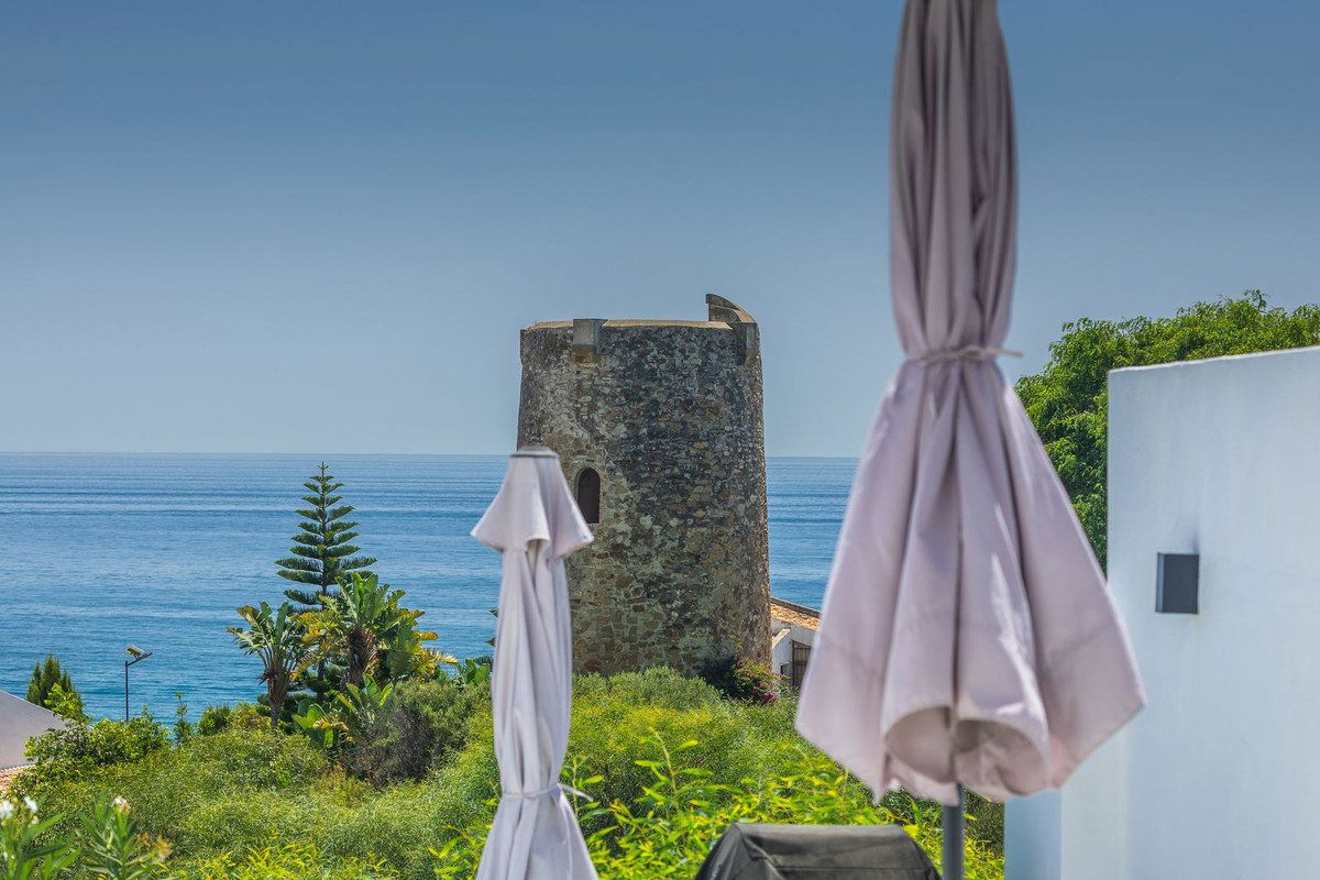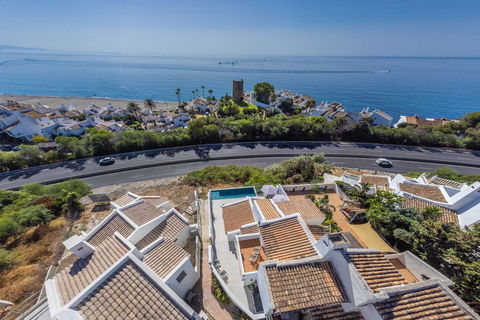 Modern and elegant villa with extraordinary panoramic views of the sea, the mountains, Gibraltar, and Africa, located in a privileged area with direct access to beautiful beaches via a convenient footbridge or an easy underground tunnel. This property is part of a unique architectural complex designed by renowned European architect Aubrey David, widely awarded for his innovative and aesthetic approach. Set within a well-established and meticulously maintained residential community, it offers access to six communal swimming pools, mature gardens, a gym, and a tennis court. Each villa in the complex features a unique design and layout, adding to the exclusive character of the community. The villa enjoys an excellent location, just a short drive from Estepona, La Duquesa, and Sabinillas, and well connected to Sotogrande, Marbella, Gibraltar, and Málaga Airport. All essential services, supermarkets, schools, and the new hospital are conveniently close, just 2 km away. Ideal for golf enthusiasts, the property is next to Estepona Golf and close to prestigious courses such as Finca Cortesin. Facing southeast and recently renovated, the villa retains its charming original rustic style. It is laid out over several levels, allowing for an abundance of natural light through its many windows. The home features several terraces with different orientations, a private pool, and a spacious covered parking area. Holiday rentals are allowed, with a 20% supplement applied to the community fee. A property full of character, charm, and an unbeatable location. Highly recommended for viewing.