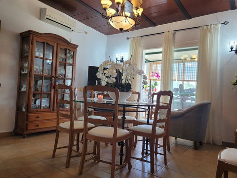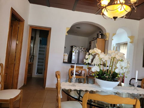 Villa of 1000 square meters, consists of two houses: the main house has four bedrooms and two bathrooms, private pool and garden, two porches, one closed with kitchen, barbecue area, appliances and living room.