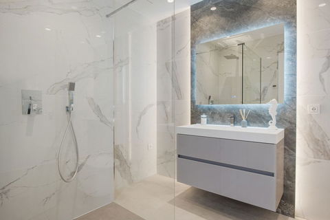First floor: 84m2 consists of 2 bedrooms (master with 17m2 terrace ) and dressing room, both fully en-suite and built-in wardrobes.