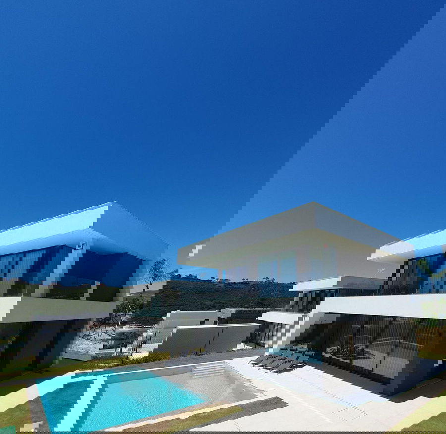 The open-plan concept integrates wrap around floor to ceiling glass with sliding patio doors. Inside is a kitchen/dining area that connects with the living room, creating an ideal atmosphere for sharing unforgettable moments. The covered terrace is perfect for relaxing in the rest area, while the garden features a 7m private pool to enjoy sunny days. In addition, you will find a wrap around balcony to contemplate the stunning panoramic sea views.