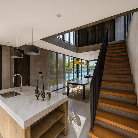 This newly built (under construction) contemporary villa in modern concrete style offers luxurious open-plan living at its finest.